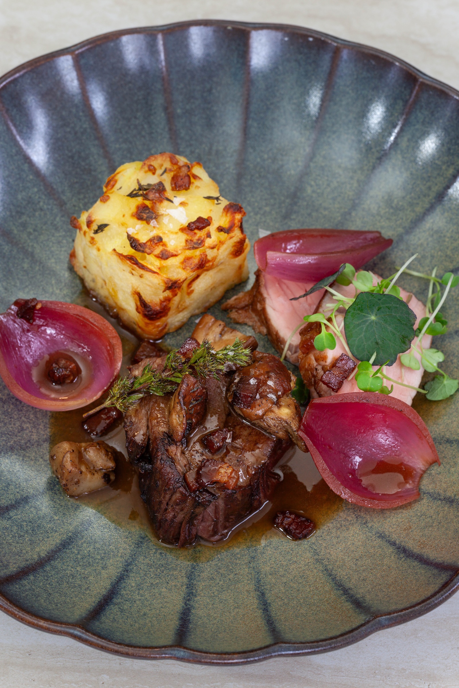 og Mørbrad af dansk øko-Gris stegt med Sar
