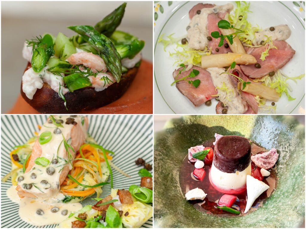nye Kartofler og grønne Asparges, bagt Spidskål og fynske Spirer